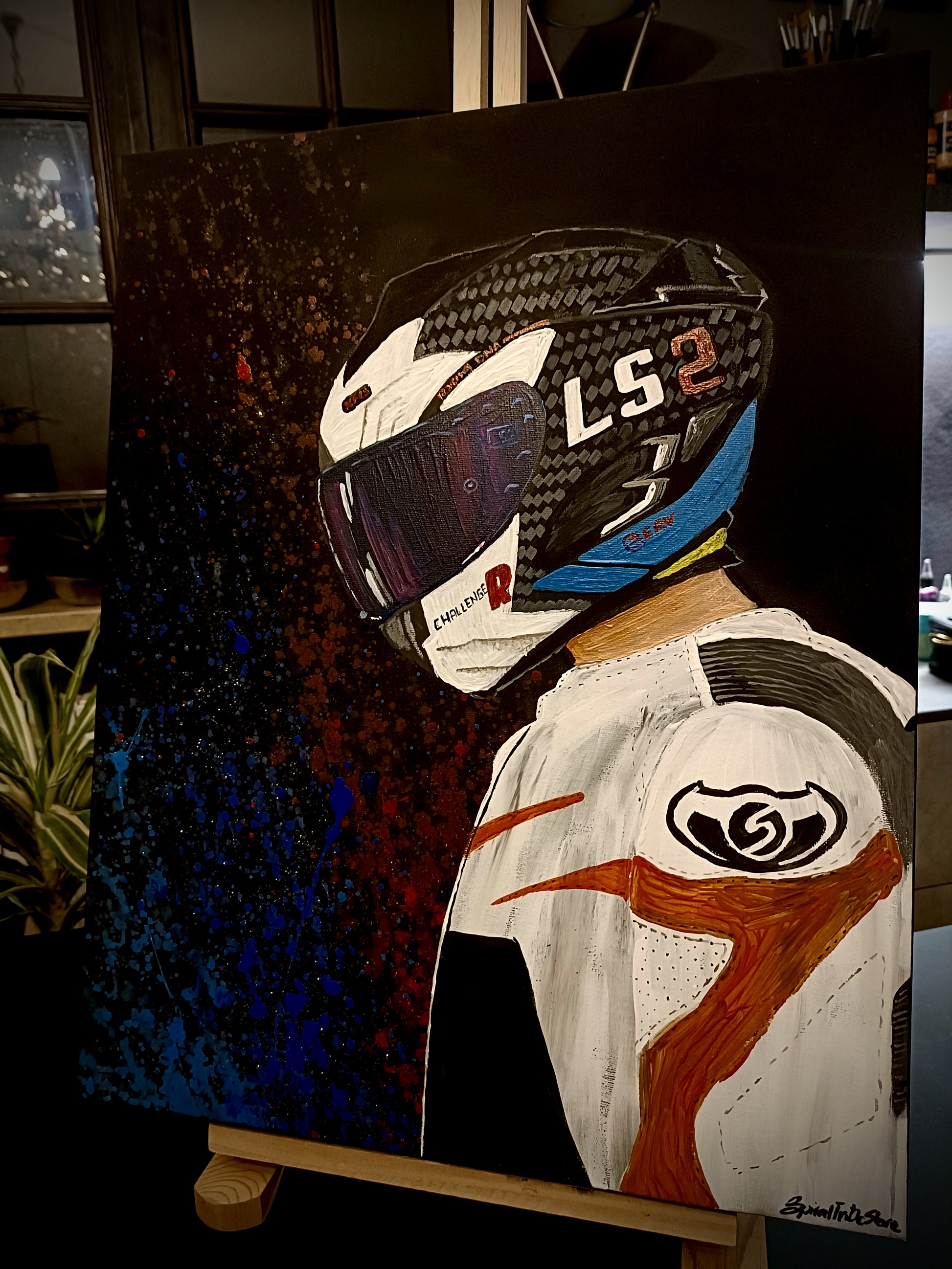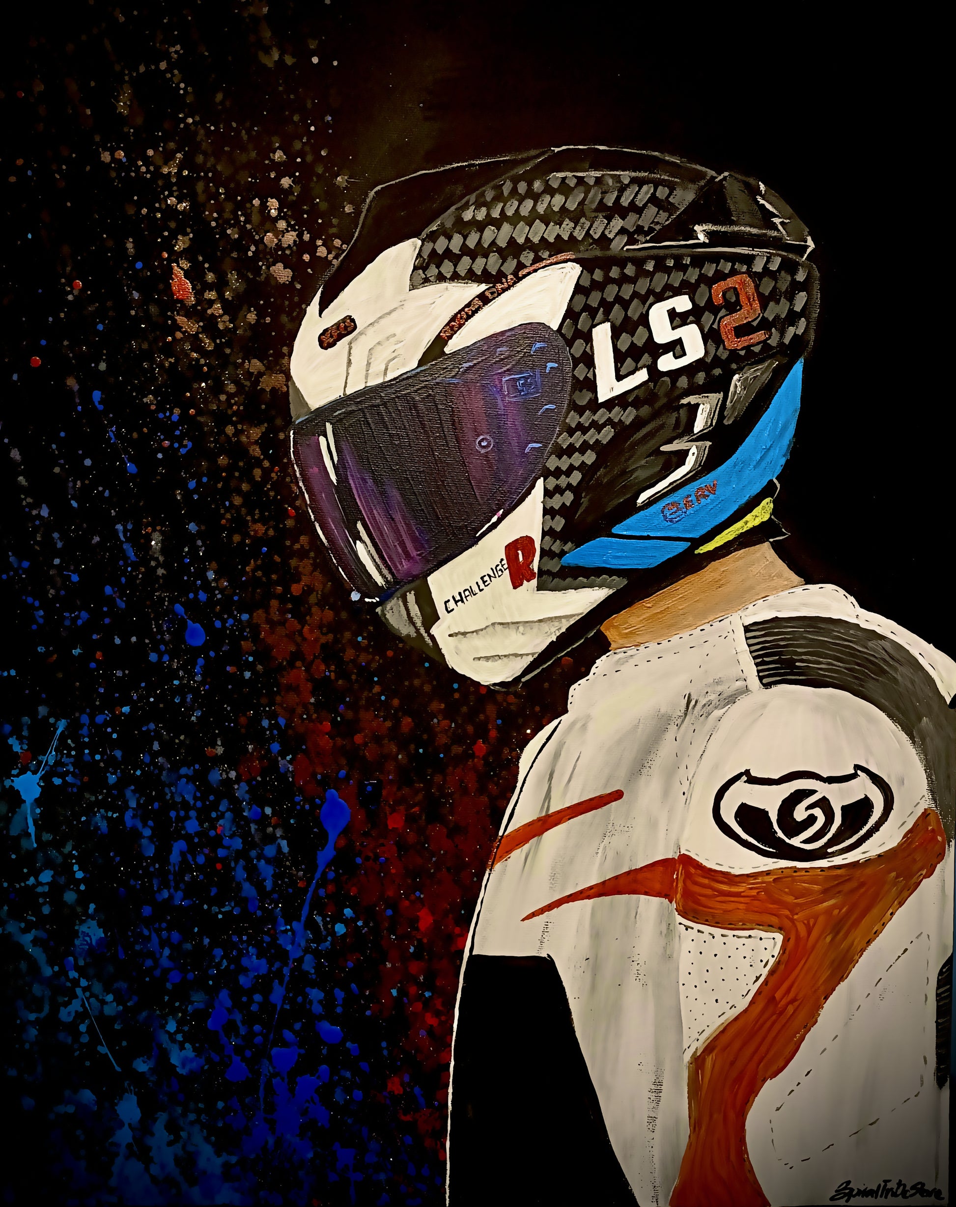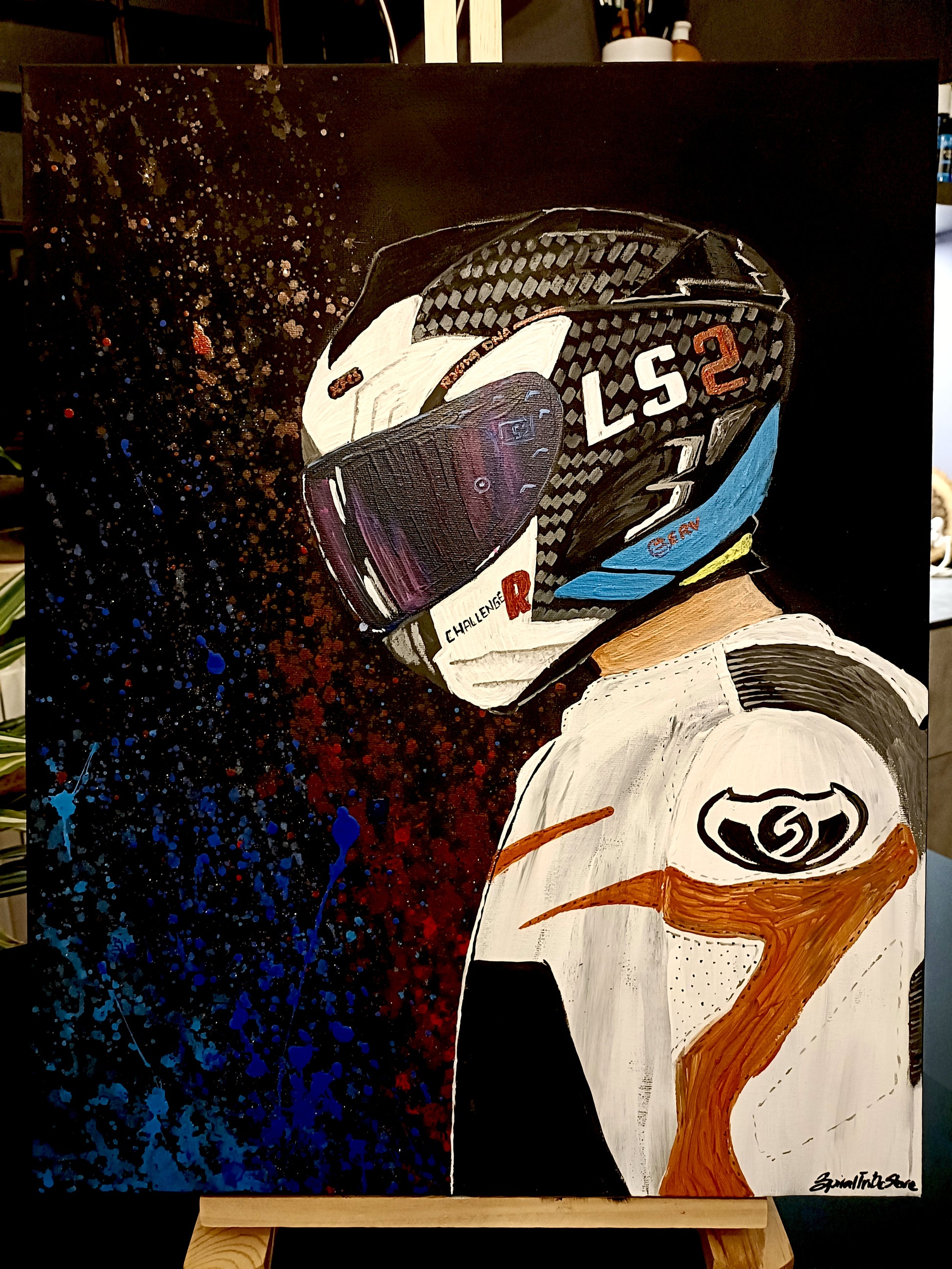 Ritratto & sfondo con schizzo riprendendo i famosi colori della casa BMW su commissione.