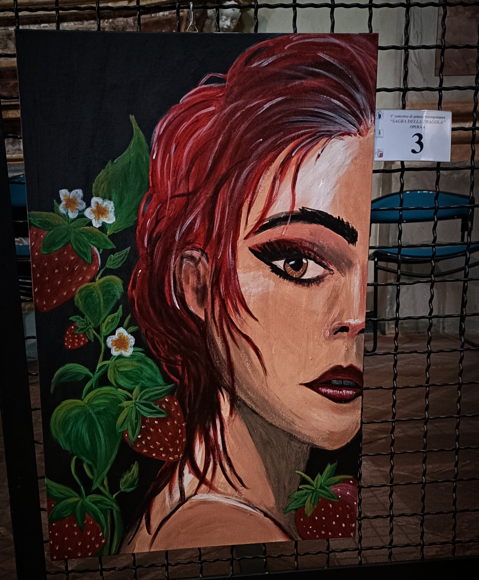 Ho voluto raffigurare una Donna per esprimere questo particolare frutto, simbolo di piacere, benessere e purezza. Fresca, ricca di profumi e aromi delicati. Rossa come il colore dell'amore e della sensualità. progetto realizzato ad un concorso, "la sagra della fragola" a Sommariva Perno.