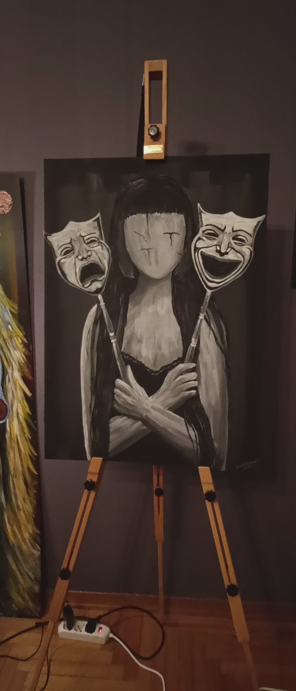 Con questo dipinto ho giocato con i colori primari .. il nero e il bianco.